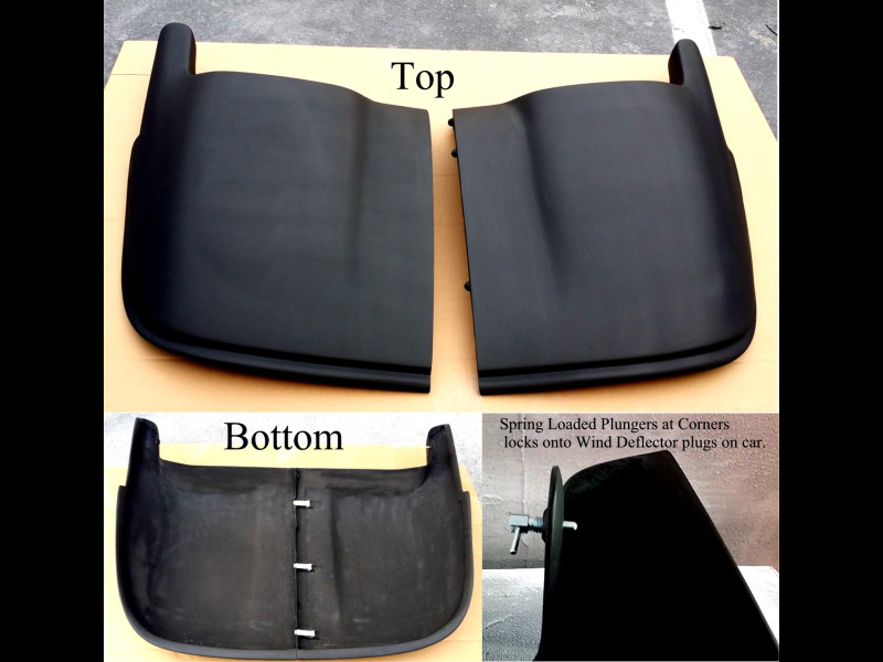 - Front Corners are attached with Spring Loaded Plungers which locks onto Wind Deflector plugs on car.